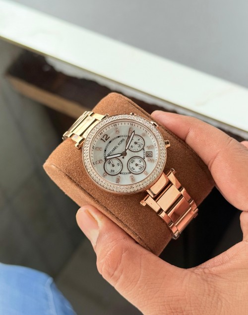 Michael Kors Parker Steel Chronograph model MK5491 is available & Ready to ship Today #MK5591 #For her #7AAA #Features-•Case size-39mm •Case thickness-12mm •Case material-Steel •Case color-copper •Dial-White Pearl Dial •Bracelet-Rosegold Steel material. •Clasp-Double push deployment. #Chronographs-•30 minutes,60Second,24Hours subdials with date window. Machine-Og quartz chronograph machinery with 1 year sellers machinery warranty New price updated & Free brand name MK box 1 YEAR SELLERS MACHINERY WARRANTS
