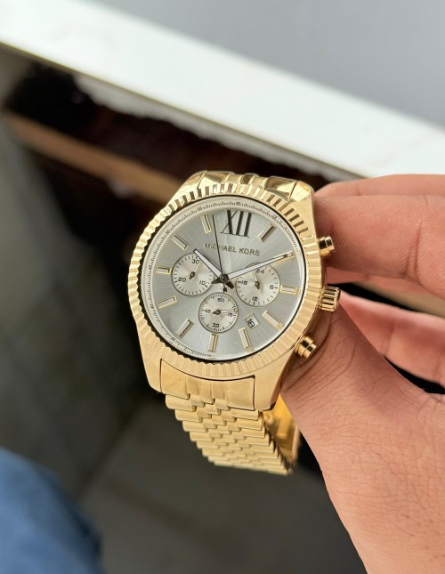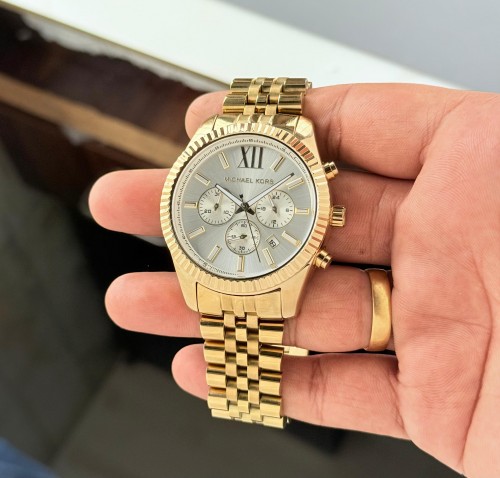 ? *Designed with the aspirational man in mind, MK Lexington Men's watch brings sleek and streamlined experience to a whole new level.* ? # Michael Kors # For Men # 7AA Premium Collection # Model - Dynamic Lexington # Case Size - 44mm # Specification - SIGNATURE STYLE OF SOPHISTICATION - Working Chronograph - 24 Hour time, 1 Min reset & 60 min stop watch - Date Counter - 5 Link Gold tone bracelet - Dual Clasp lock with branding - Water Resistant - *Pure Next to Original quality Stop watch chronograph Resetting machinery* Same Day Shipping* 1 Year Machine Warranty