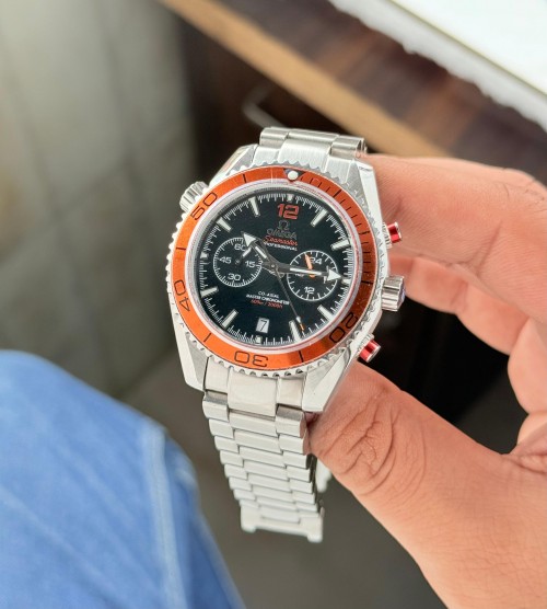 It was with OMEGA’s maritime legacy in mind that the brand launched its Planet Ocean line. The stylish OMEGA Seamaster Planet Ocean 600M pays homage to OMEGA’s dive watch heritage. *Omega Seamaster Planet Ocean 600M Co-Axial Caliber Now Available & Ready To Ship?* #Omega #Seamaster Planet Ocean #Original Model Collection #Features- •Case Size-45.5mm •Case Material-Steel •Case Color-Silver •Bezel-Orange •Dial-Black Color •Strap-3 Link Stainless Steel Strap •Clasp-Double Push Button Omega Original Lock #Chronograph-Sixty-minute and 12-hour counters are found on the same dial at the 3 o’clock position and Date Window. *•Machine-Powerful Premium Quartz Chronograph Machinery* ?New Price Updated & Free Brand Name Omega Box?